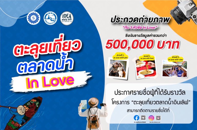 ประกาศรายชื่อผู้ที่ได้รับรางวัล โครงการตะลุยเที่ยวตลาดน้ำอินเลิฟ ใน 3 หัวข้อประกวด